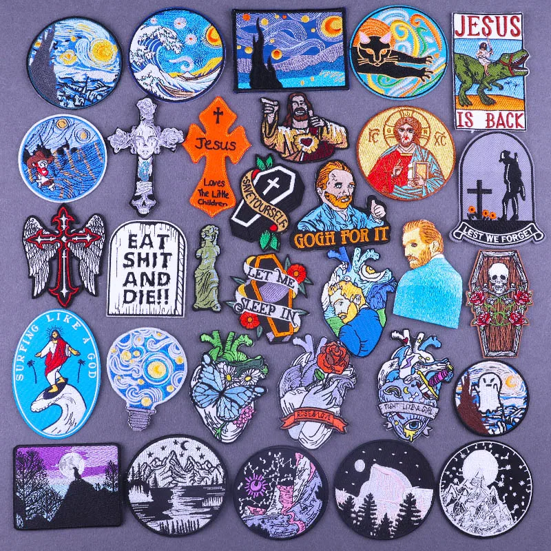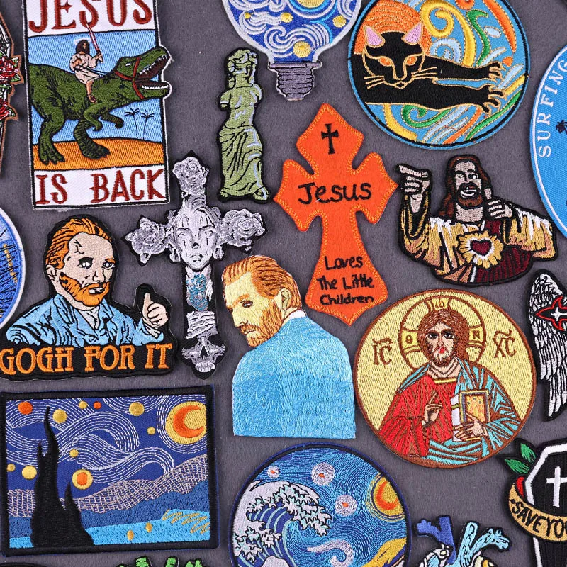Термоклейкие нашивки для одежды с изображением Иисуса, нашивки с вышивкой Ван Гога, нашивки для одежды с перекрестной вышивкой, волнистые нашивки сделай сам для одежды