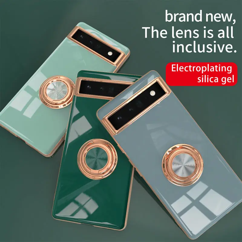 Роскошный мягкий силиконовый чехол-подставка с металлическим кольцом для телефона Google Pixel 6A 5A