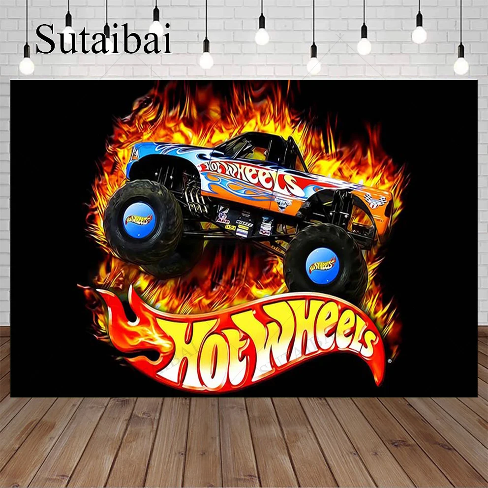 Горячие колеса скачок автомобиль тема фон пламя движение двигателя фотография Декор детский торт разбивать фото студия Prop