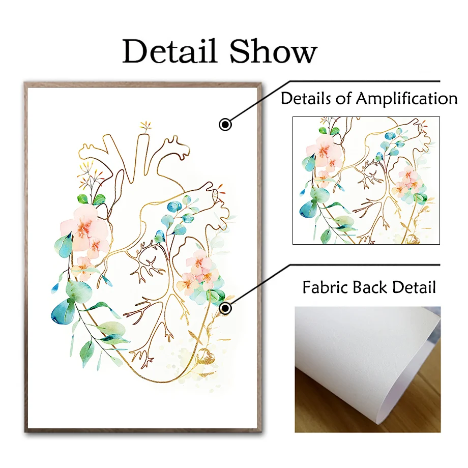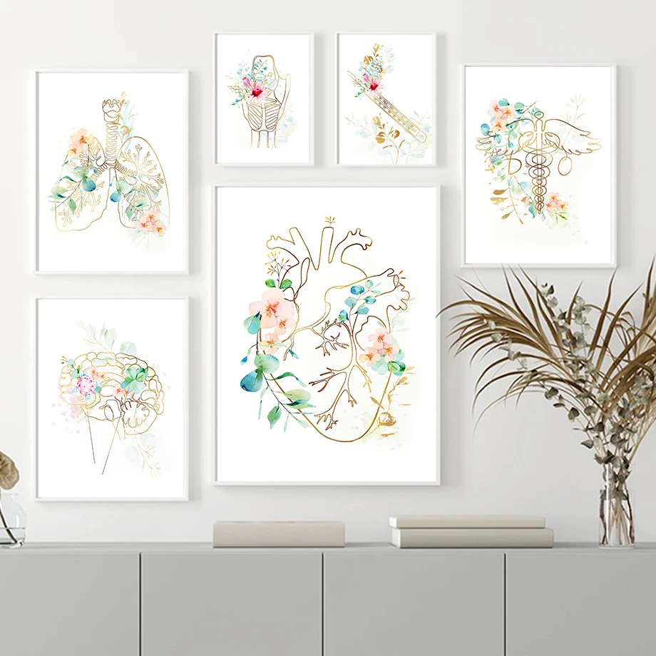 Настенная картина с изображением цветочных органов, сердца, легких, мозга, зубов