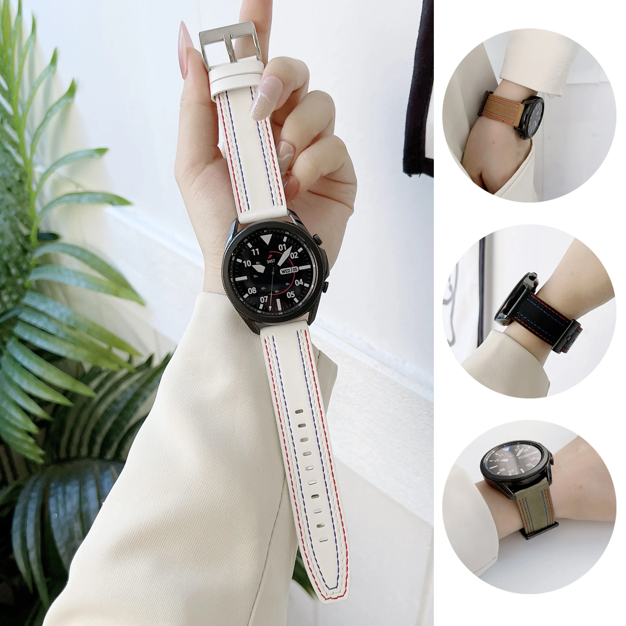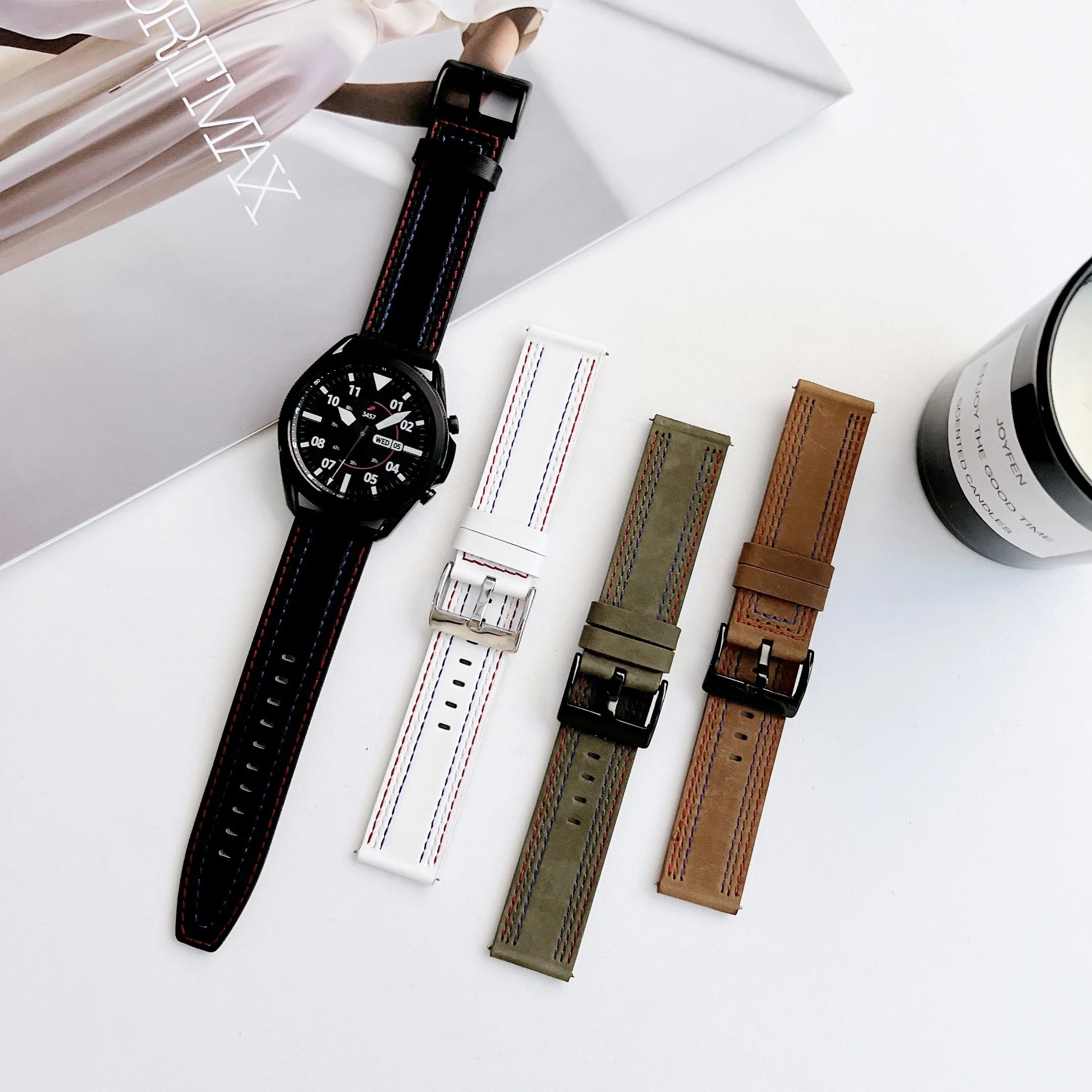22 мм 20 мм кожаный ремешок для часов Galaxy Watch 44 классический 40 мм 44 мм ремешок Samsung Gear S3 S2 белый браслет Correa для активного отдыха 2
