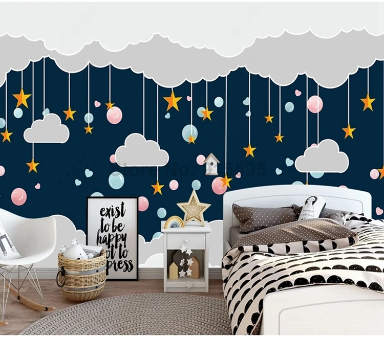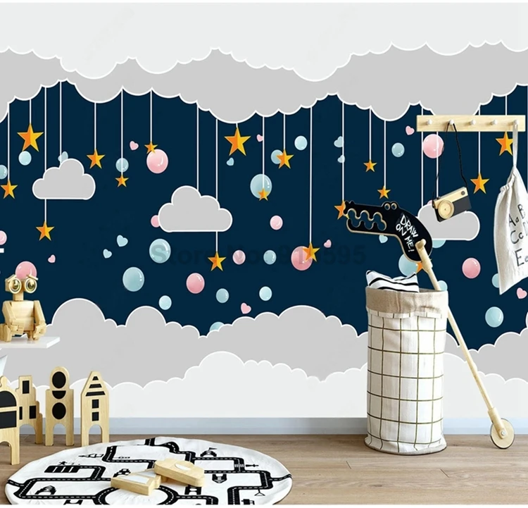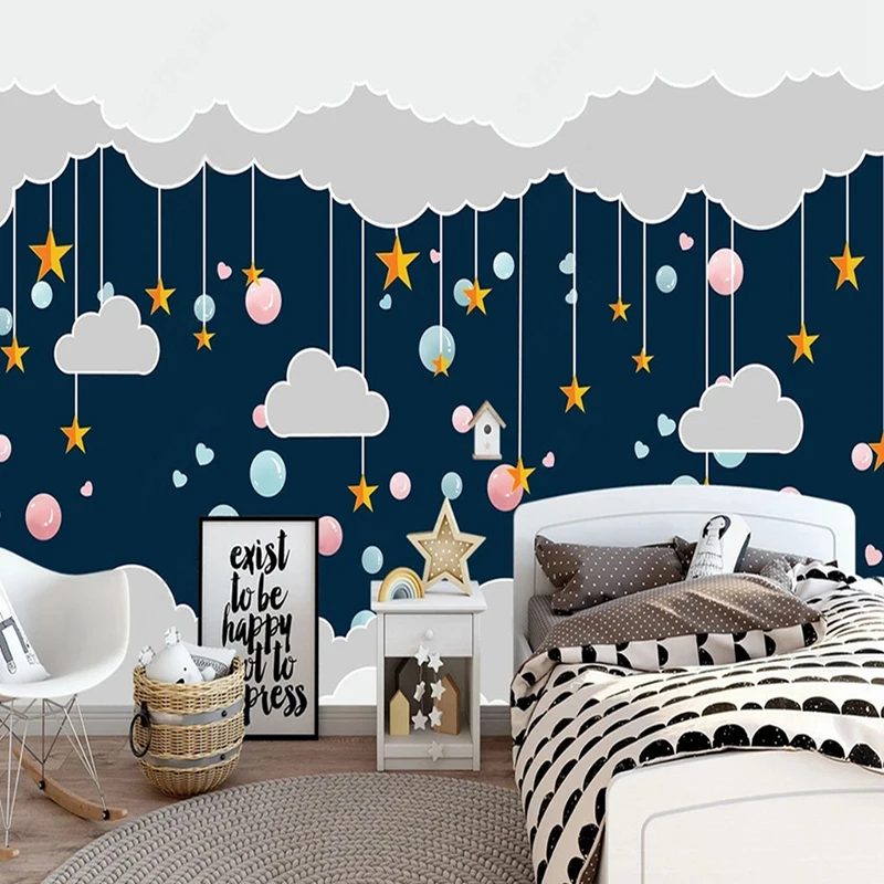 Скандинавские 3D обои для детской комнаты с ручной росписью, рисунок облаков и звезд, фотообои любых размеров, экологичный домашний декор