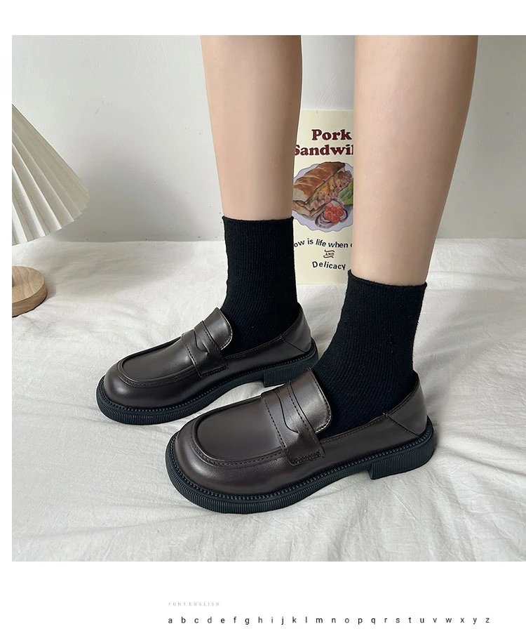 Школьная обувь в японском стиле, черные, коричневые туфли на платфо...