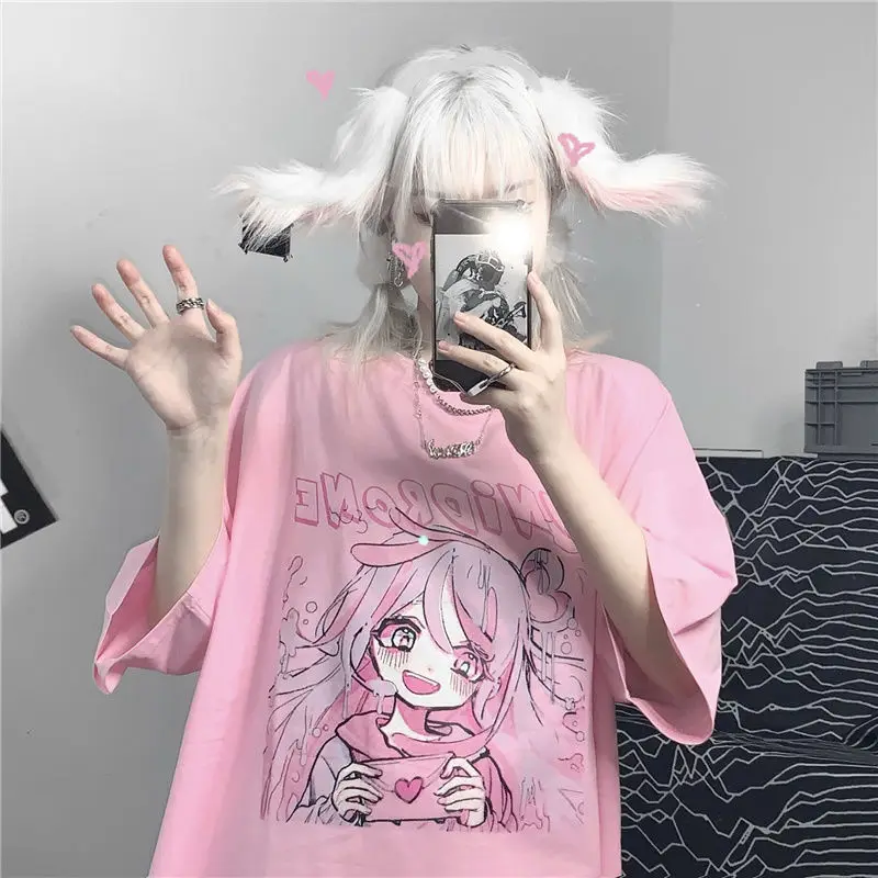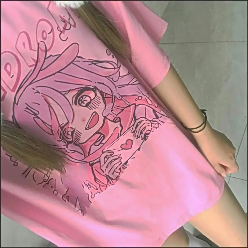 Футболка в стиле аниме E Girl, модная футболка с графическим рисунком в стиле Харадзюку, милая школьная уличная одежда с рисунком