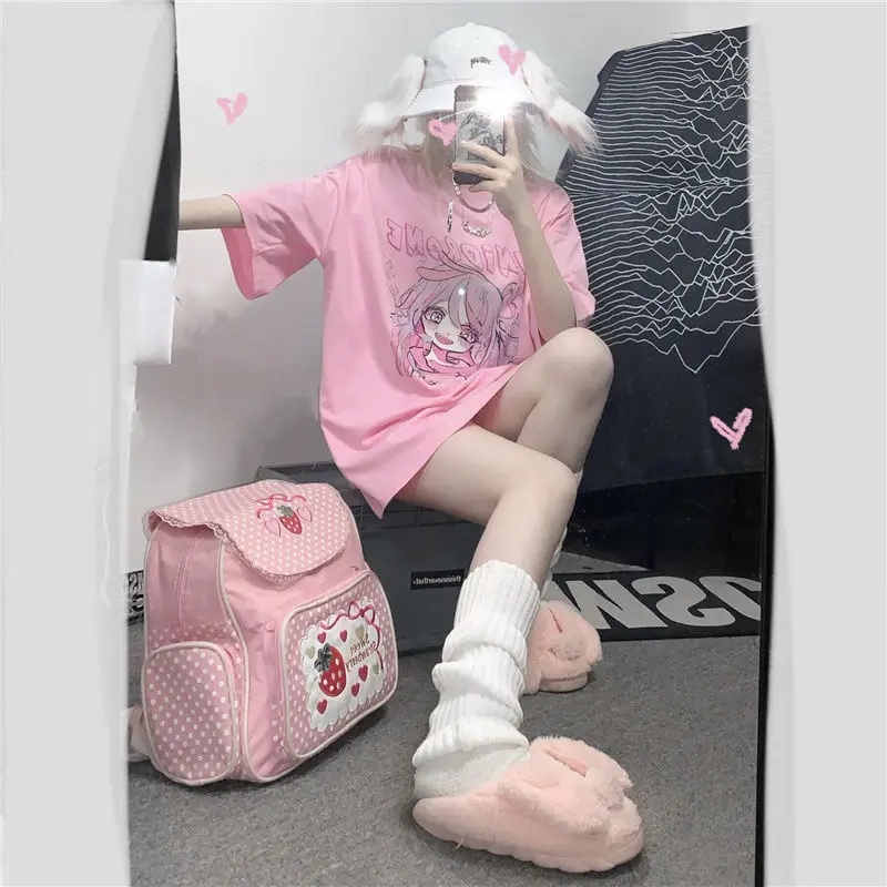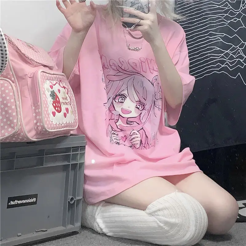 Футболка женская в стиле японского аниме, милая розовая одежда в ст...