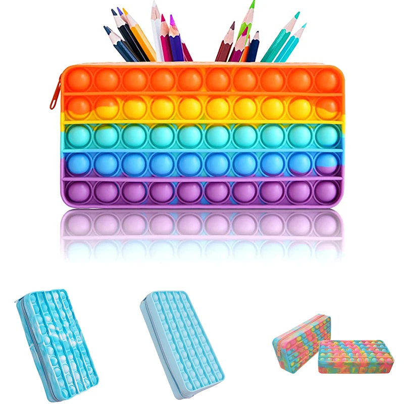 Новинка, фиджет-игрушка, Радужный поп-чехол для карандаша, пузырьковый Сжимаемый чехол, игрушки, декомпрессионный силиконовый чехол-карандаш для детей