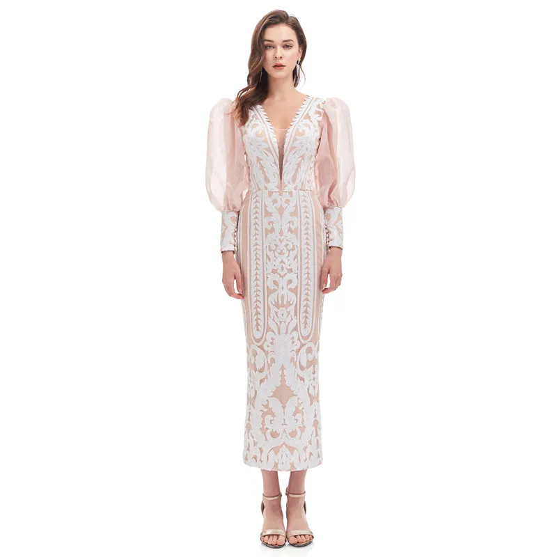 Элегантные вечерние платья, короткие женские Формальные платья для свадьбы, с пайетками и пышными длинными рукавами, наряды для выпускного вечера, вечернее платье, размер Pus, 2022