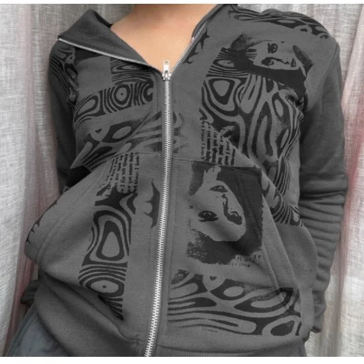 Женское худи с карманами, винтажное пальто в стиле 90-х с графическ...
