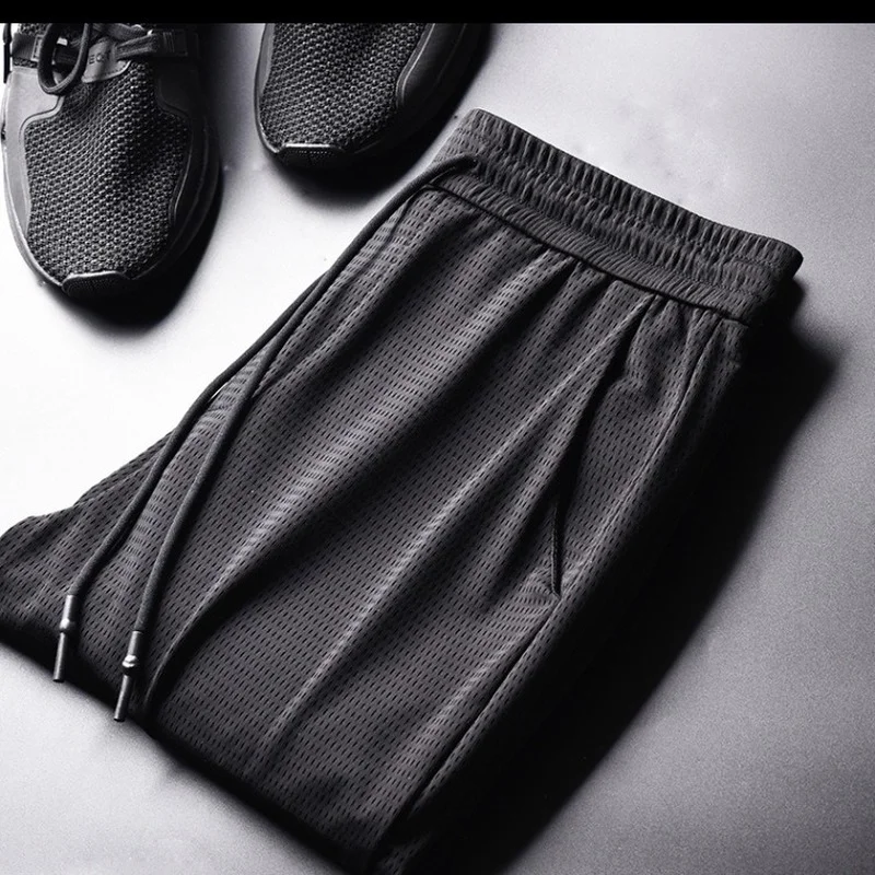 Дышащие мужские повседневные брюки с дырками из ледяного шелка, облегающие брюки, спортивные штаны для фитнеса и рыбалки, велосипедные шорты