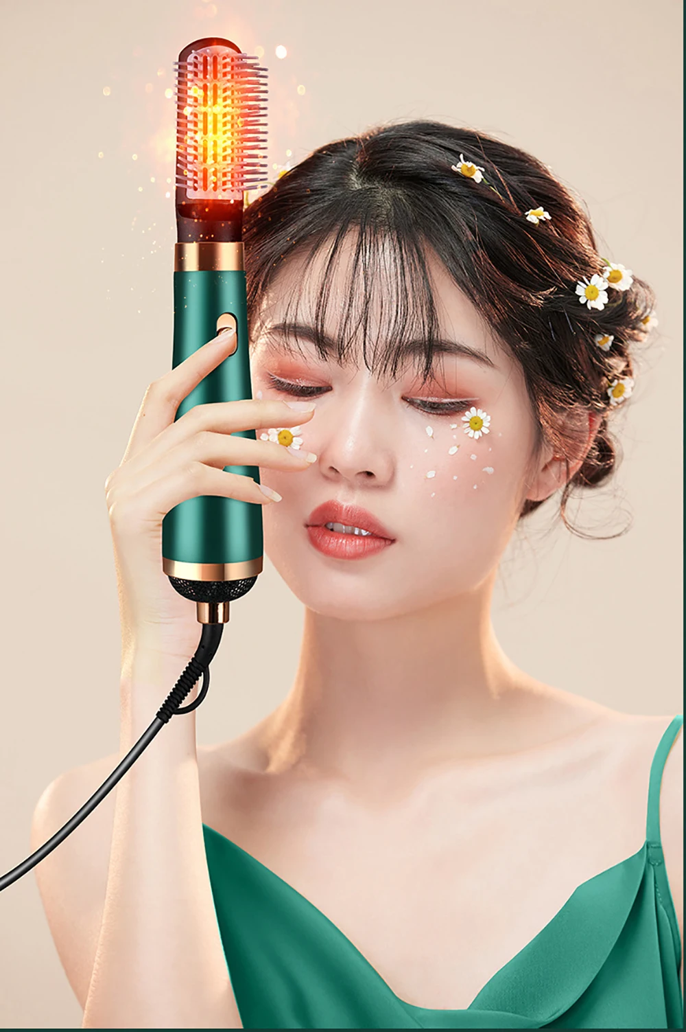 2. Высокоскоростная постоянная температура + Электрический нагревательный гребень: высокоскоростная постоянная температура воздуха, 170 ° Электрический нагревательный гребень для выравнивания и выпрямления волос