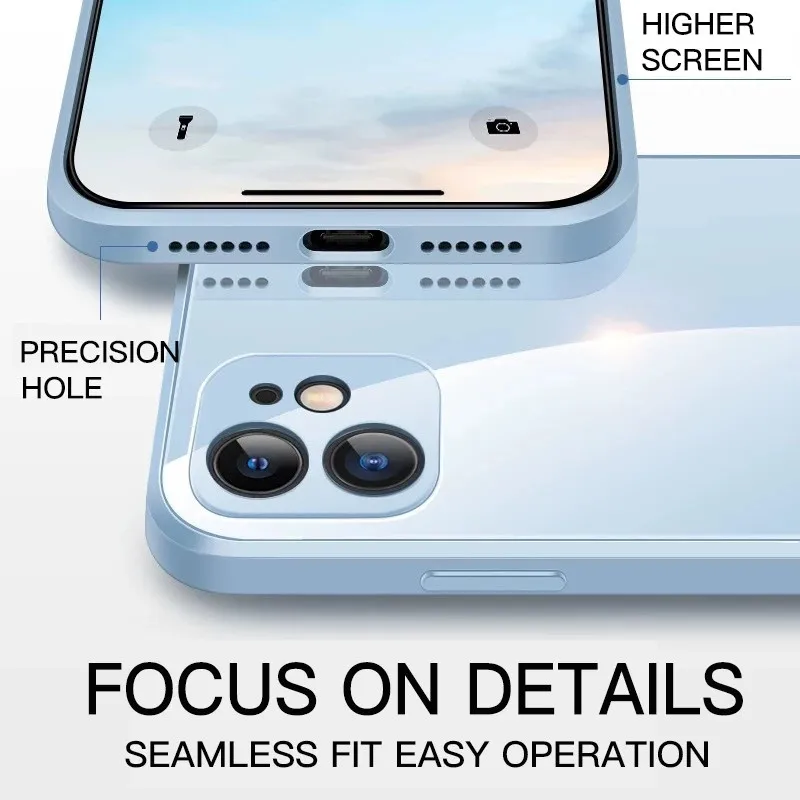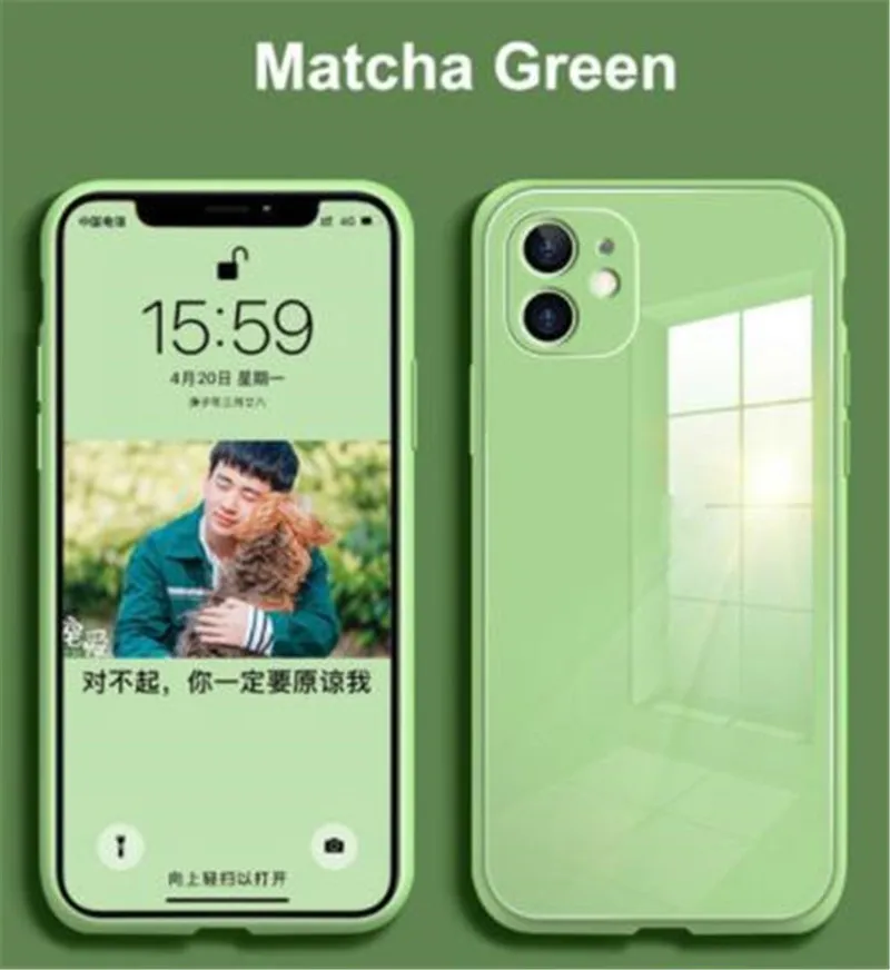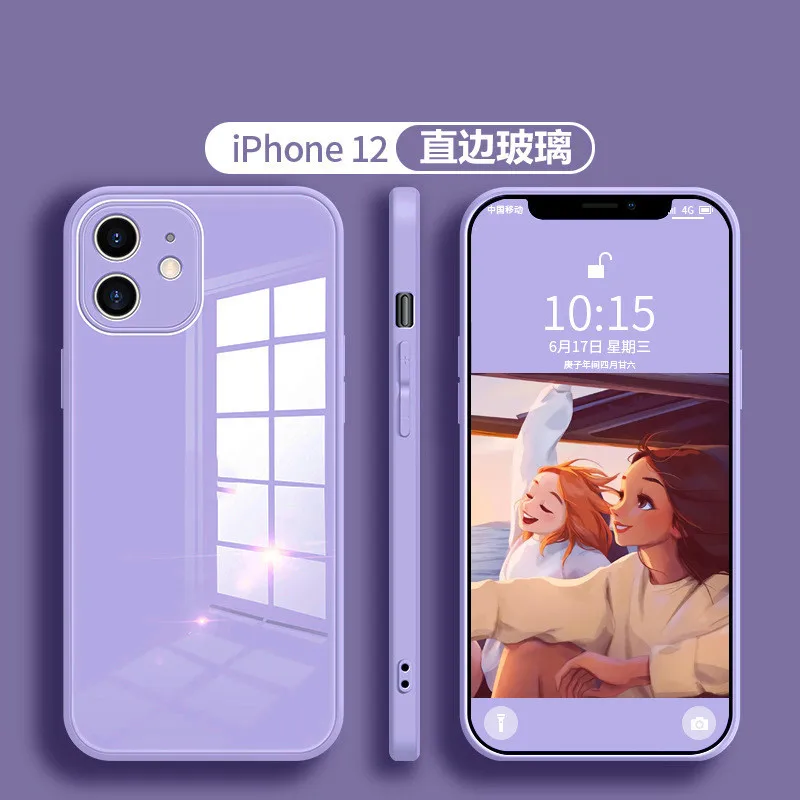 Чехол из жидкого стекла с прямыми краями для телефона iPhone 12 11 ...