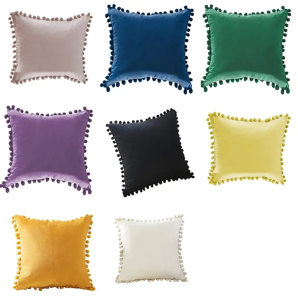 Декоративные наволочки с помпонами, мягкие бархатные однотонные наволочки для дивана, спальни, автомобиля, 2 упаковки