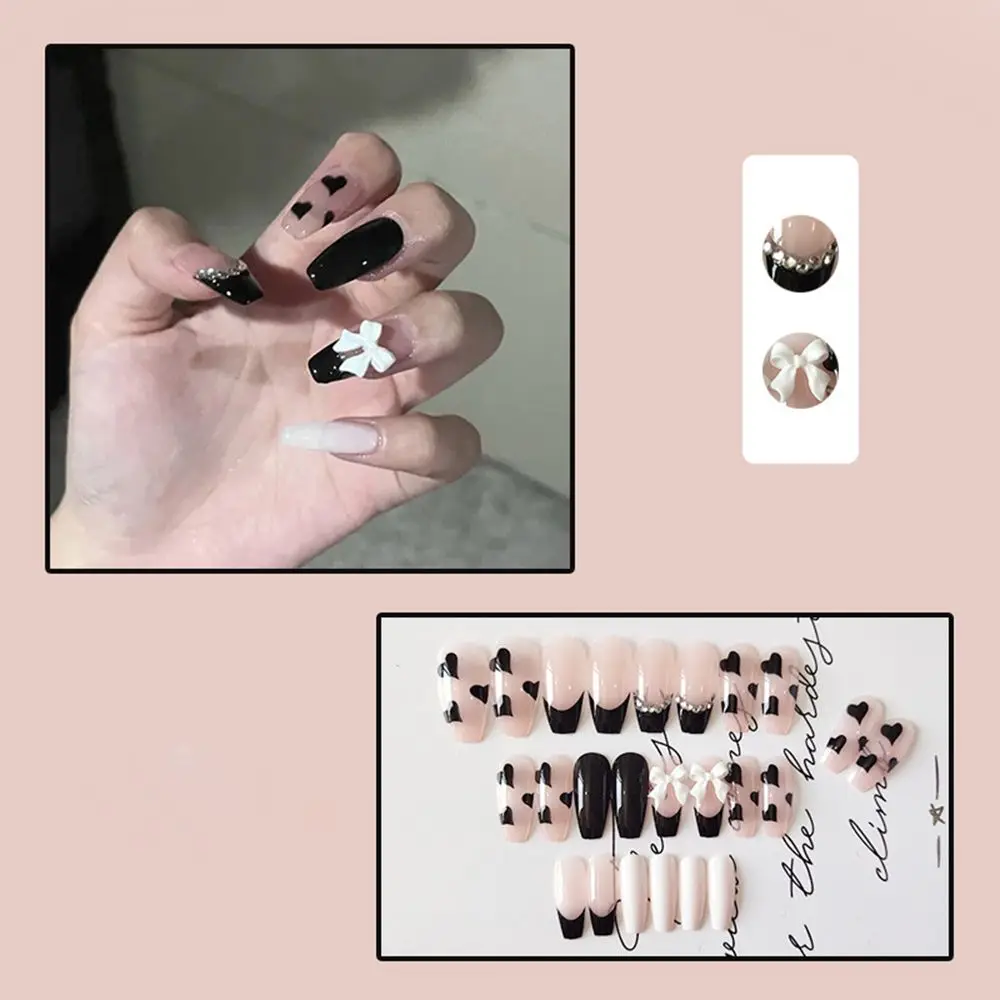 24 шт., накладные ногти с розовым бантом и сердцем, длинные ногти в...