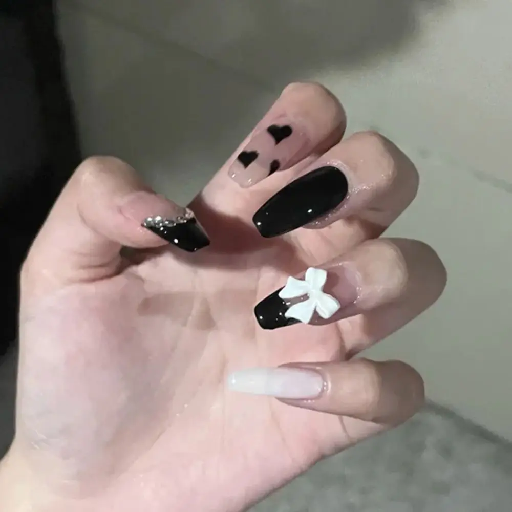 24 шт черное сердце дизайн накладные ногти длинные балерины гроб по...