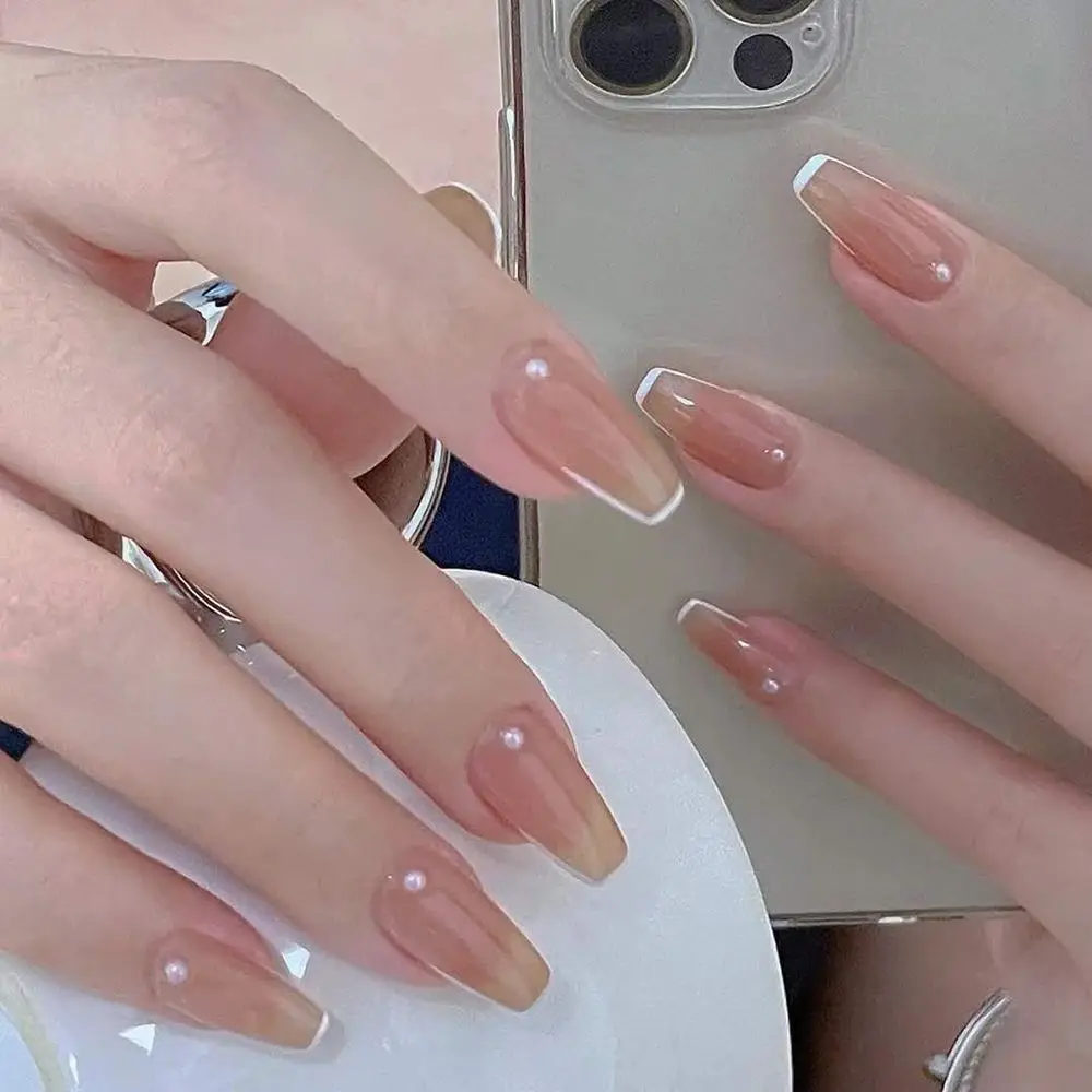 24 шт.кор. съемные накладные ногти с карамельным покрытием, француз...