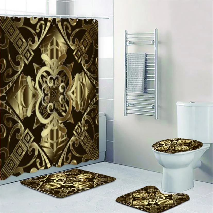 Модный золотистый Серебристый цветочный Греческий Ключ Мандала занавеска для ванной душевая занавеска набор полутонов меандер геометрический декоративный коврик для ванной Декор