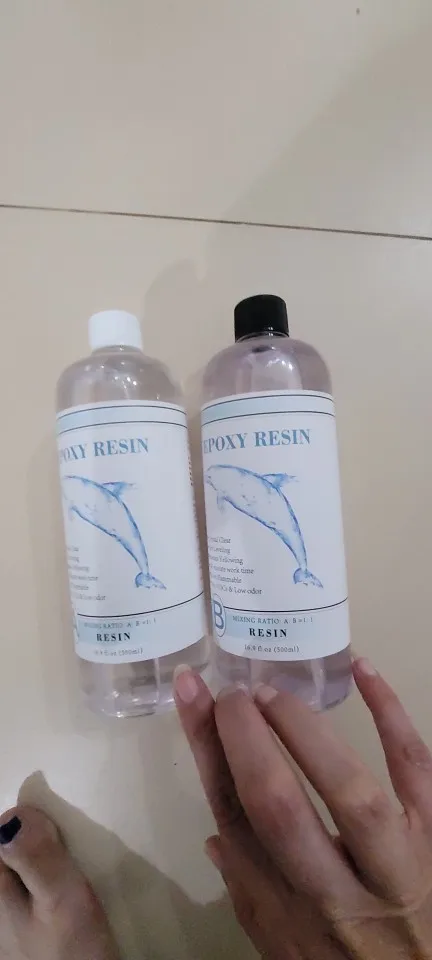 Не так высокого качества, очень сильный запах после смешивания, должен работать с маской. Много пузырьков остались через 24 часа и отверстия в эпоксидной смолой, лежа лицом вниз по форме.