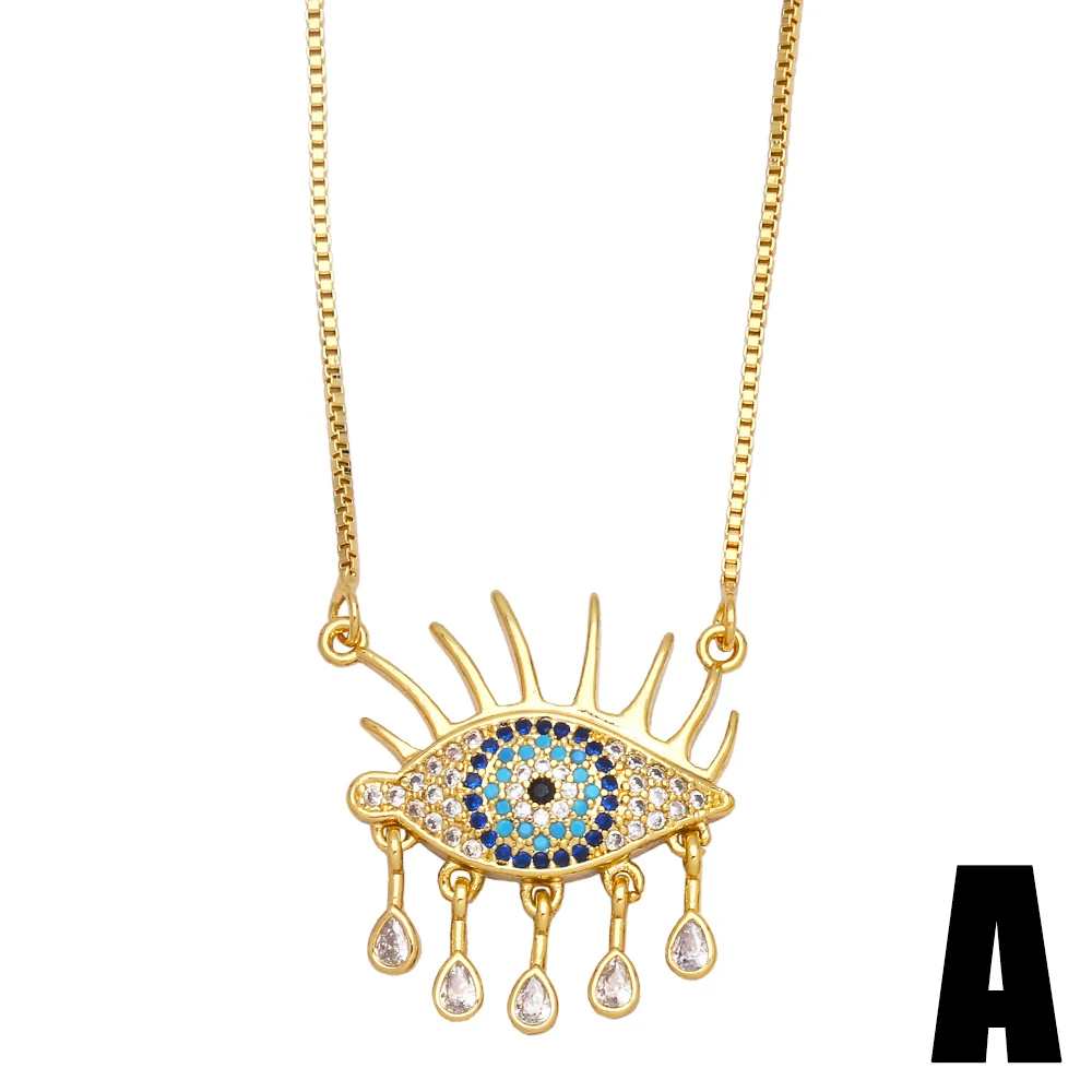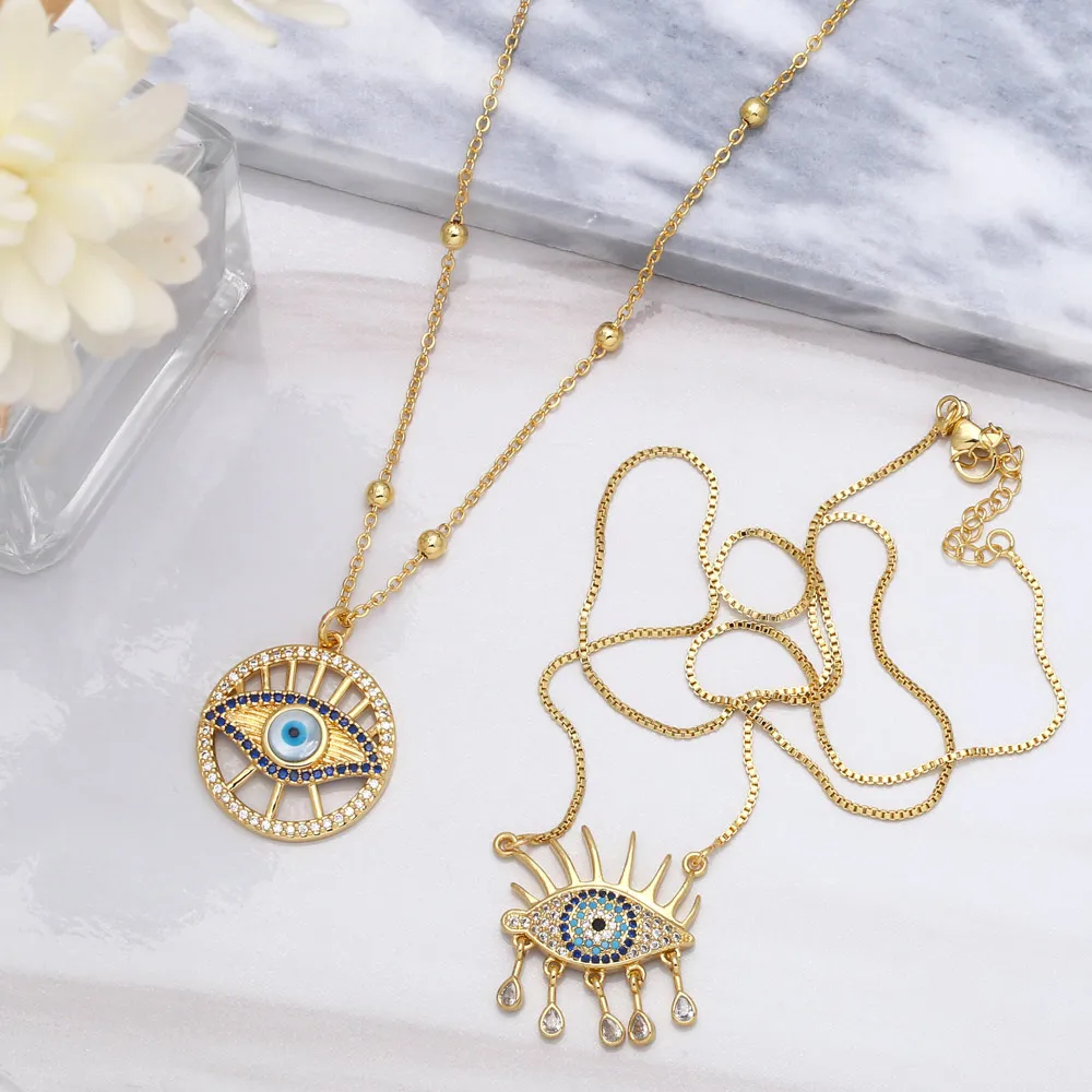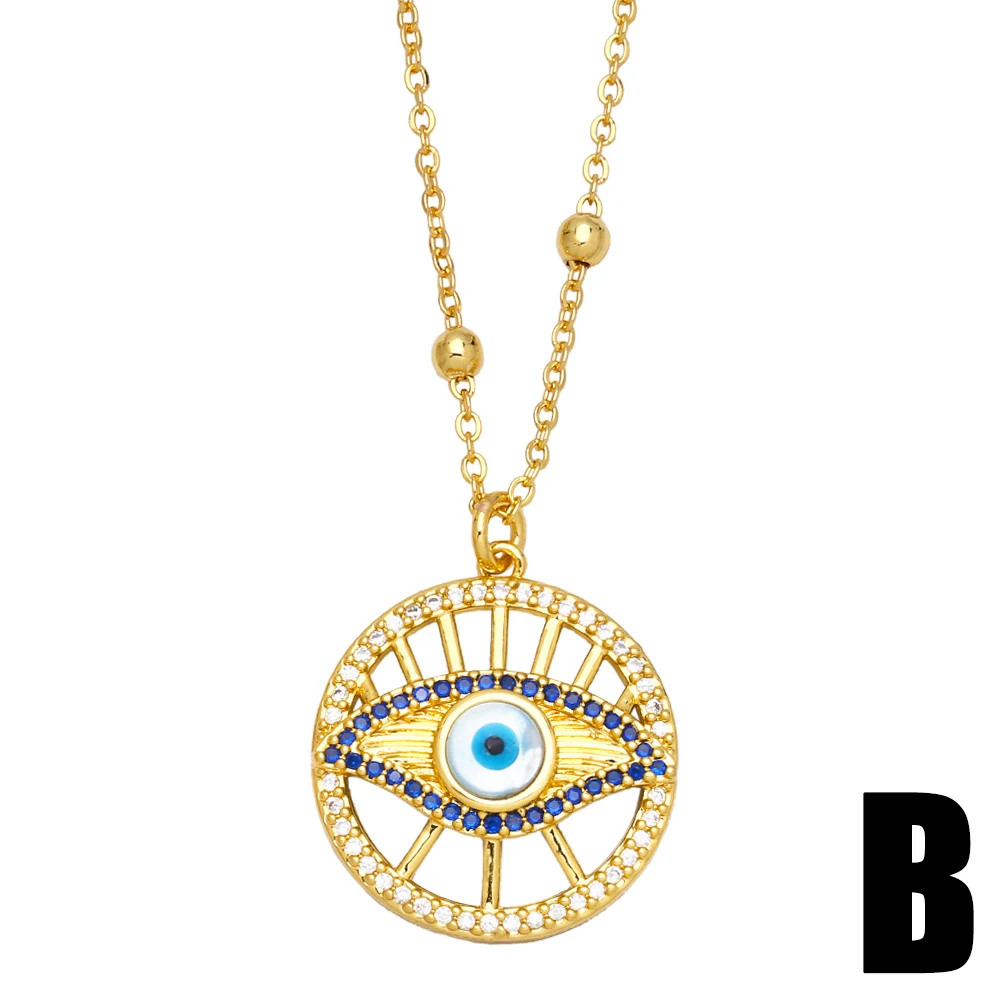 FLOLA золотые ожерелья с голубым сглаза для женщин греческие ожерел...