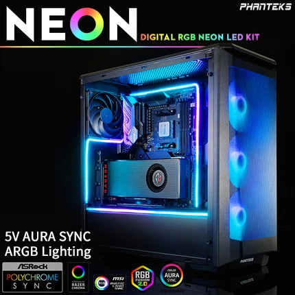 Неоновая осветительная полоса PHANTEKS 5v ARGB для декоративного шасси, ПК, чехол охладитель материнской платы Fan с 5V AURA SYNC to Mobo, PH-NELEDKT