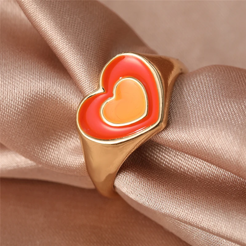 Ins Style красочные кольца с сердечками для женщин и мужчин, винтаж...