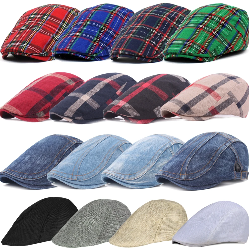 Берет в клетку, регулируемый, шляпы весна-осень, для мужчин и женщи...