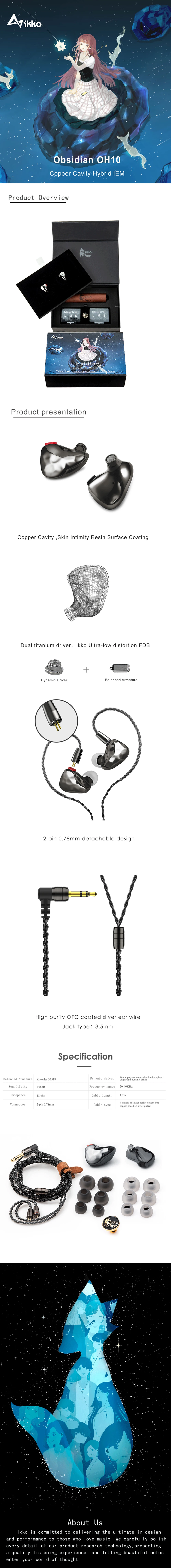 IKKO Obsidian OH10 1BA + 1DD двойные гибридные проводные наушники-вкладыши для игр гарнитура Музыка внутриканальные аудио мониторы ikko oh10 IEMs