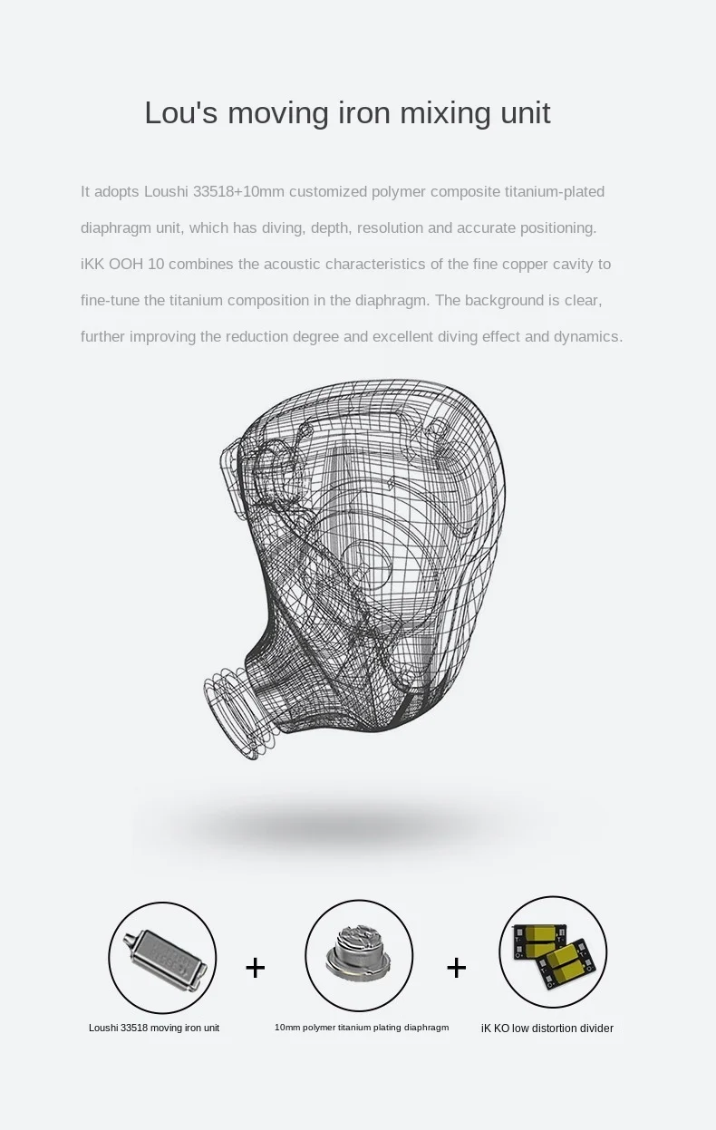 Он изготовлен из передового легкого сплава для обеспечения твердости полости и лучшего контроля веса наушников. В сочетании с драйвер акустический дизайн двойного титанового драйвера, внутренние гармонические резонансные искажения уменьшаются, и звук более тонкий и естественный.