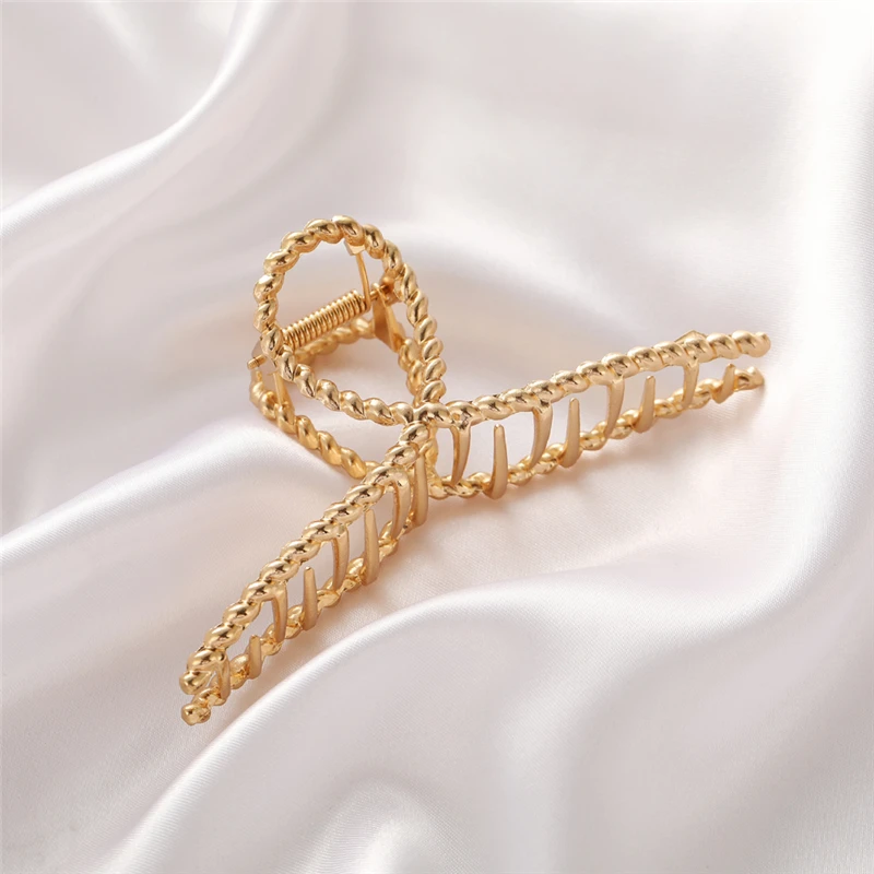 Женщины Мода Простые Золотые Волосы Коготь Ретро Зажимы для волос Б...
