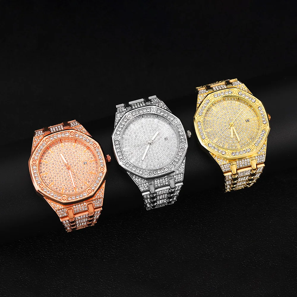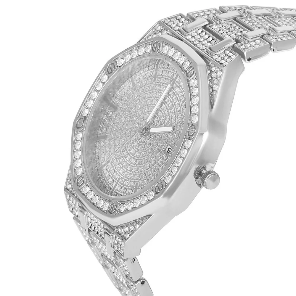 Часы наручные для мужчин и женщин, Роскошные Кварцевые украшения в стиле хип-хоп, с кубинской цепью, с украшением в виде свидания