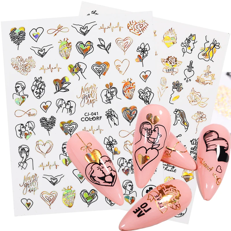 3D наклейки для ногтей в виде сердца, любви, голографический цветок...