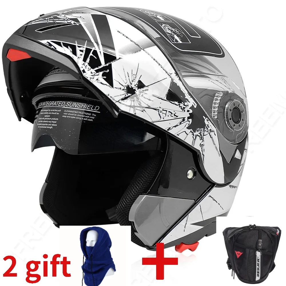 Мотоциклетный откидной шлем с двойными линзами DOT ECE, мотоциклетн...