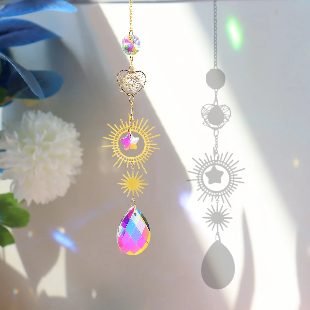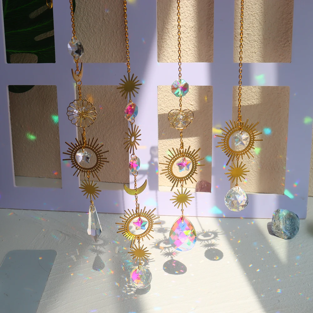 Звезда Луна Хрустальный ветряной колокольчик солнцезащитный светильник Ловец снов Радуга создание подвесной стеклянный Призма подвеска Ловец сада уличный Декор