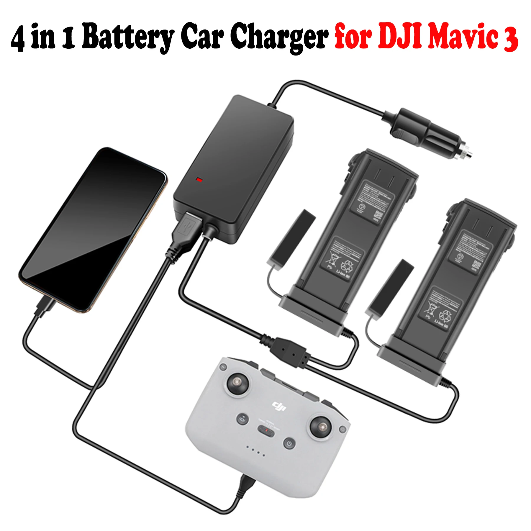 4 в 1 Автомобильное зарядное устройство для дрона DJI Mavic 3 и пульта дистанционного управления,