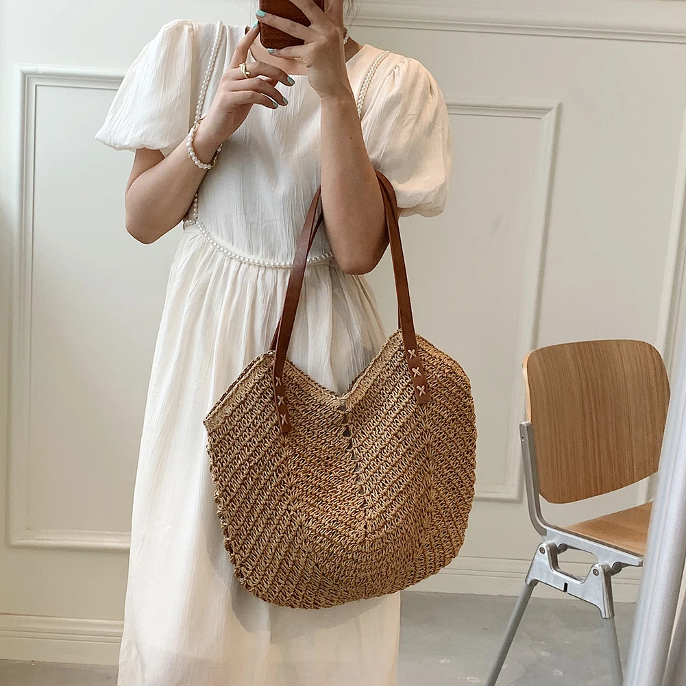 Женская пляжная сумка, винтажная плетеная Сумка через плечо ручной работы, сумки для покупок из рафии и ротанга, богемные летние дорожные повседневные сумки для отпуска