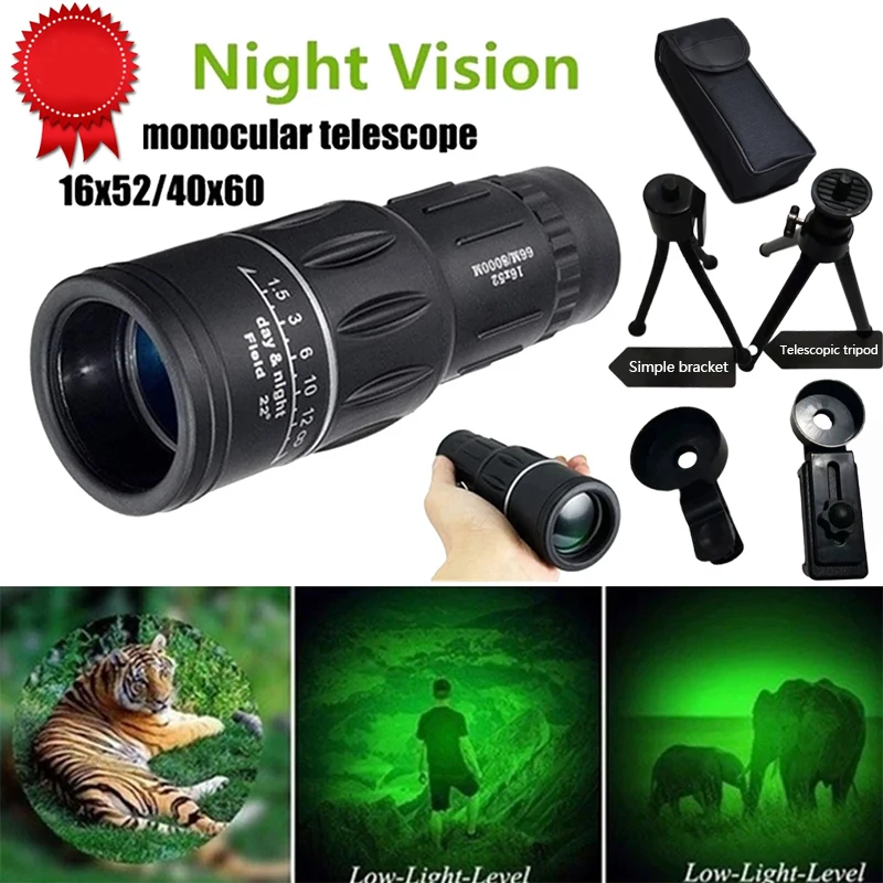 Сверхдлинный 16X52 дистанционный спортивный охотничий монокуляр, низкий светильник, телескоп ночного видения, бинокль для наружного наблюденияПодробная информация