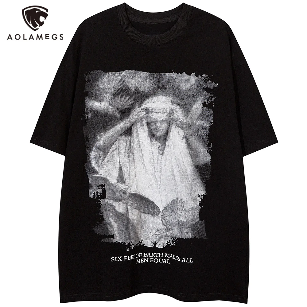 Aolamegs Футболка мужская Древняя культура птица Печать Топы Тройник пара Повседневная мода высокая улица Винтаж Большой мужская одежда лето