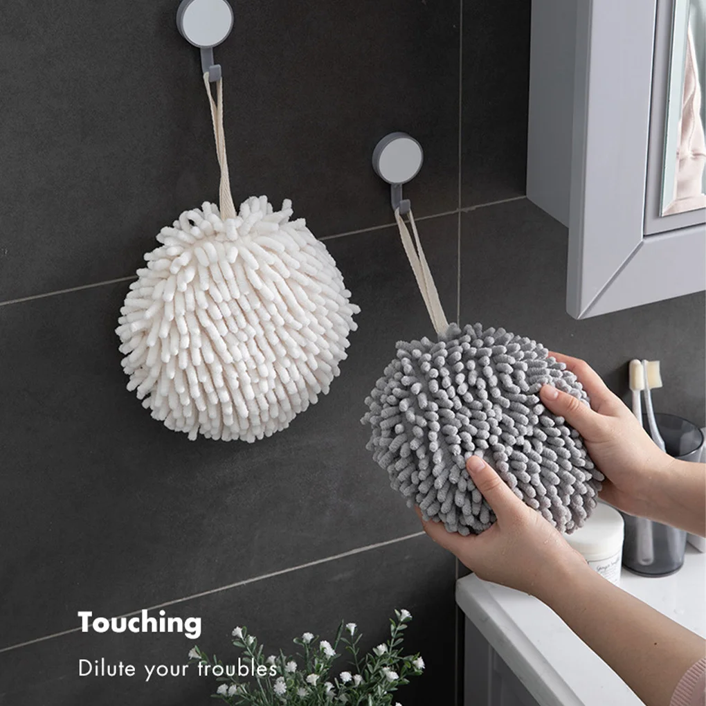 Kitchen Quick Dry Hanging Hand TowelWall Mounted Sponge Plush Ball Shaped Hands Drying Towels