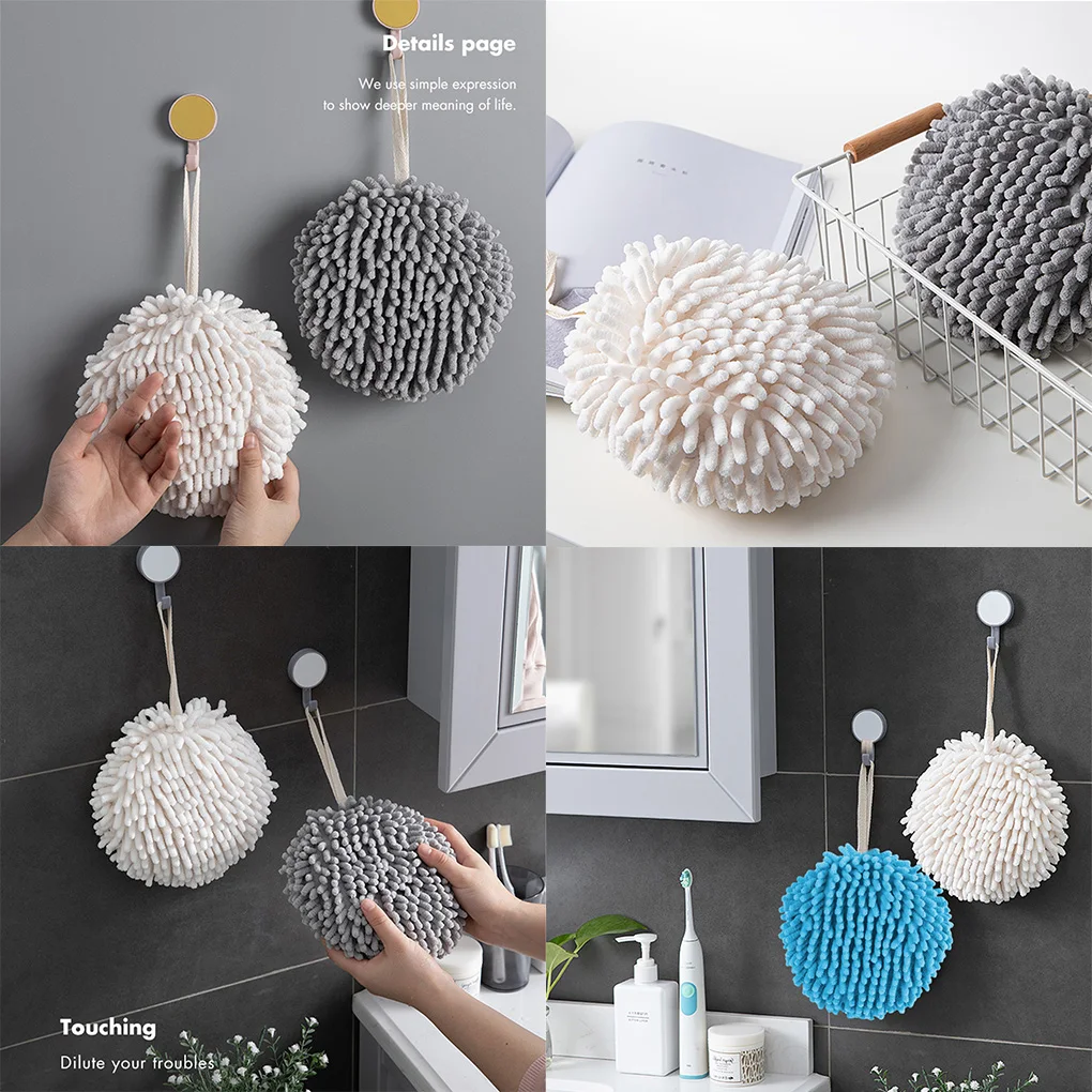 Кухонное подвесное полотенце для рук, аксессуары для ванной комнаты, мягкое плюшевое подвесное полотенце, одноцветное быстросохнущее полотенце для сушки рук, полотенце для протирания s Ball