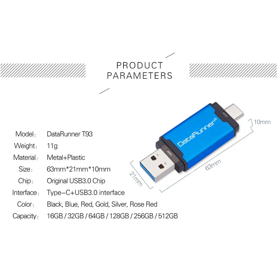 USB флеш-накопитель DataRunner 2 в 1, USB 3,0 и TYPE C, флеш-накопитель, 512 ГБ, 256 ГБ, 128 ГБ, 64 ГБ, 32 ГБ, высокоскоростная Флешка USB 3,0