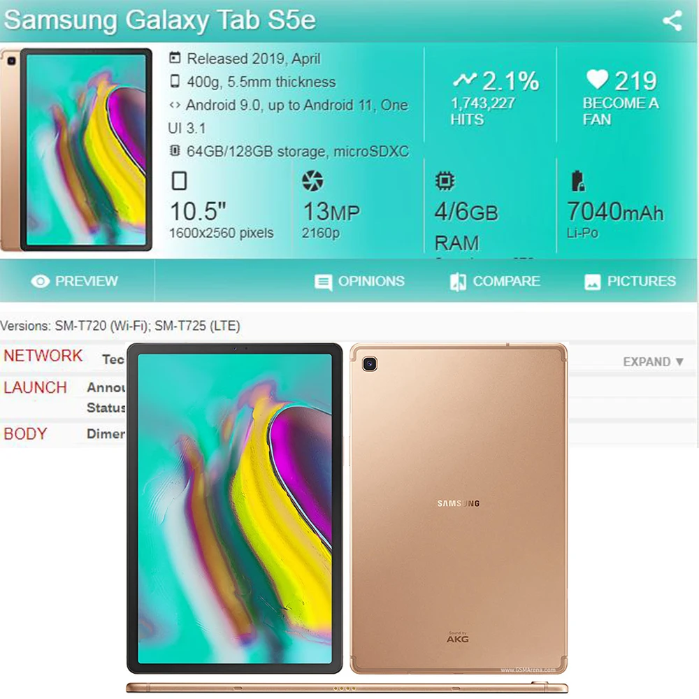 Номер моделиSamsung Galaxy Tab S5E SM-T720 T725