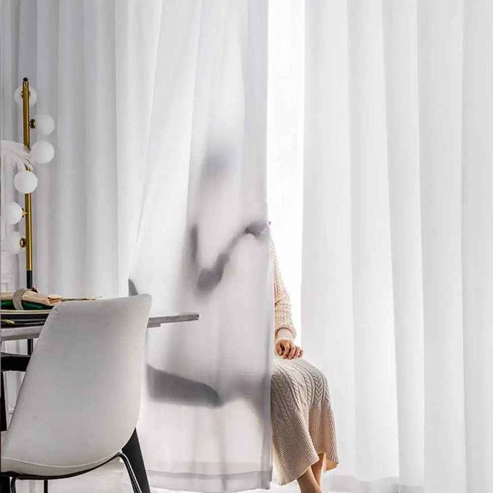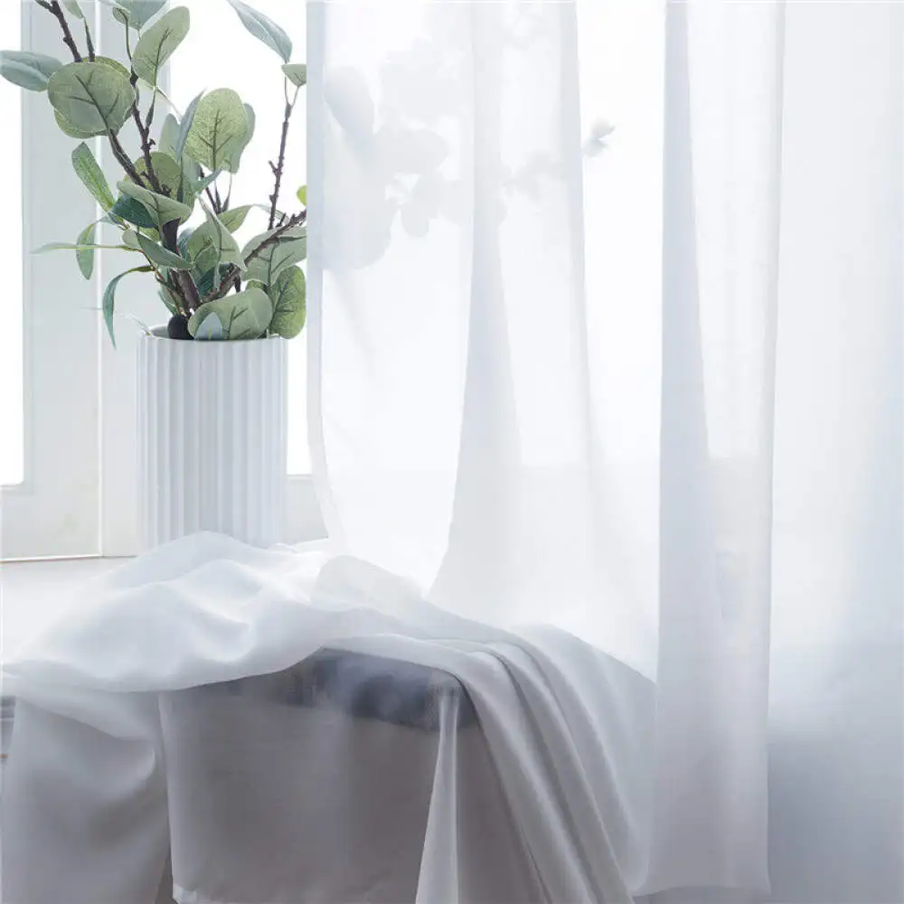 Однотонные современные тюлевые шторы из прозрачной вуали для гостин...