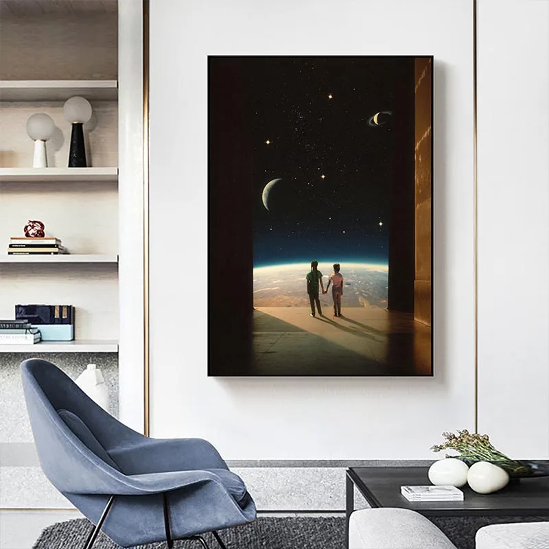Черно-белый астронавт Космос пара за руки постер и печать Космос настенный Декор картина для гостиной Декор без рамки