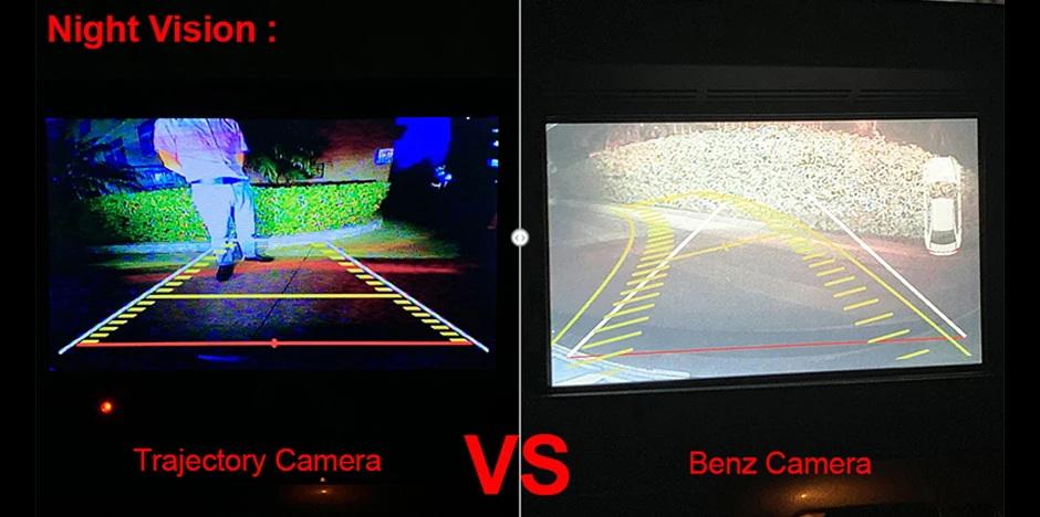 ** Траектория камеры VS камеры Benz сравнить фотографии:1. Камера траектории имеет угол 155 градусов. Оригинальная камера benz имеет угол 120 градусов.2. Камера траектории ночного видения более четкая по сравнению с камерой benz.