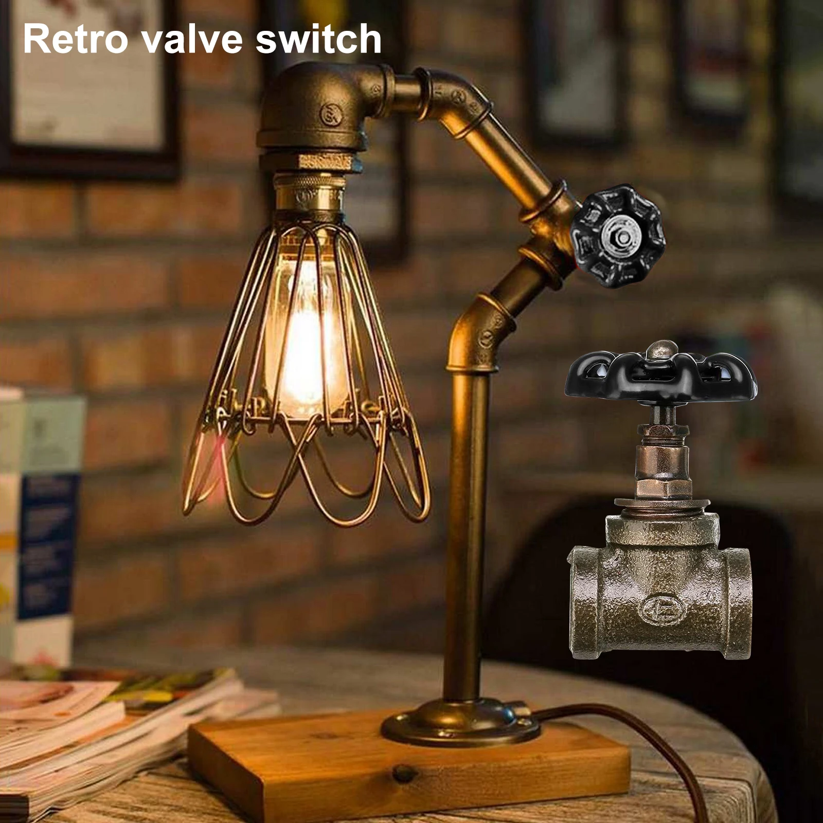 Стоп светильник клапан 34 дюйма, 12 дюйма, с проводом, винтажный, в стиле стимпанк, для лампы, в стиле лофт, настольная лампа, осветительный прибор для водопроводных труб