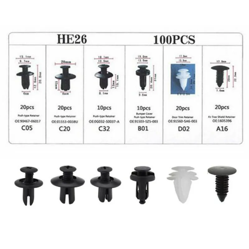 Характеристики:-эти застежки-клипсы изготовлены из нейлонового материала, подходят для использования в автомобиле. -Хороший аксессуар для автомобилей, обычно используется для установки боковых юбок, бамперов и другой отделки. -Набор фиксаторов пуш-типа поставляется с красивой пластиковой коробкой для облегчения выбора типа фиксатора, который вы хотите использовать. -Не нужно беспокоиться о потере или повреждении крепежных деталей. Все необходимые фиксаторы для точной замены старых и сломанных фиксаторов. Характеристики: Материал: нейлон посылка включает в себя: 20 x C05 заклепки 20 x C20 заклепки 10 x C32 заклепки 10 x B01 заклепки 20 x D02 заклепки 20 x A16 заклепки крепежи 1 x пластиковая коробка