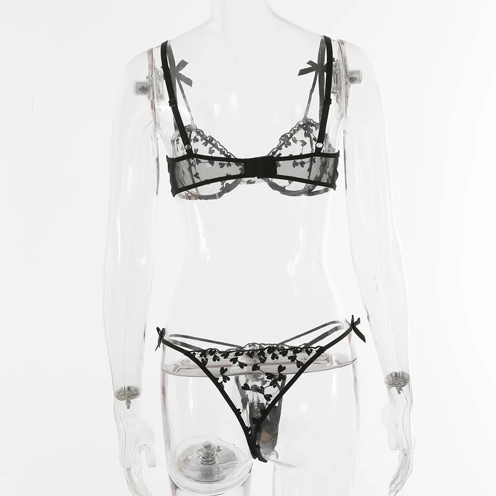 2 шт. кружевная вышивка в форме сердца, комплект бюстгальтера, женский прозрачный бюстгальтер + трусики, комплект нижнего белья, женское сексуальное нижнее белье, милая Женская повязка с перекрестными лямками