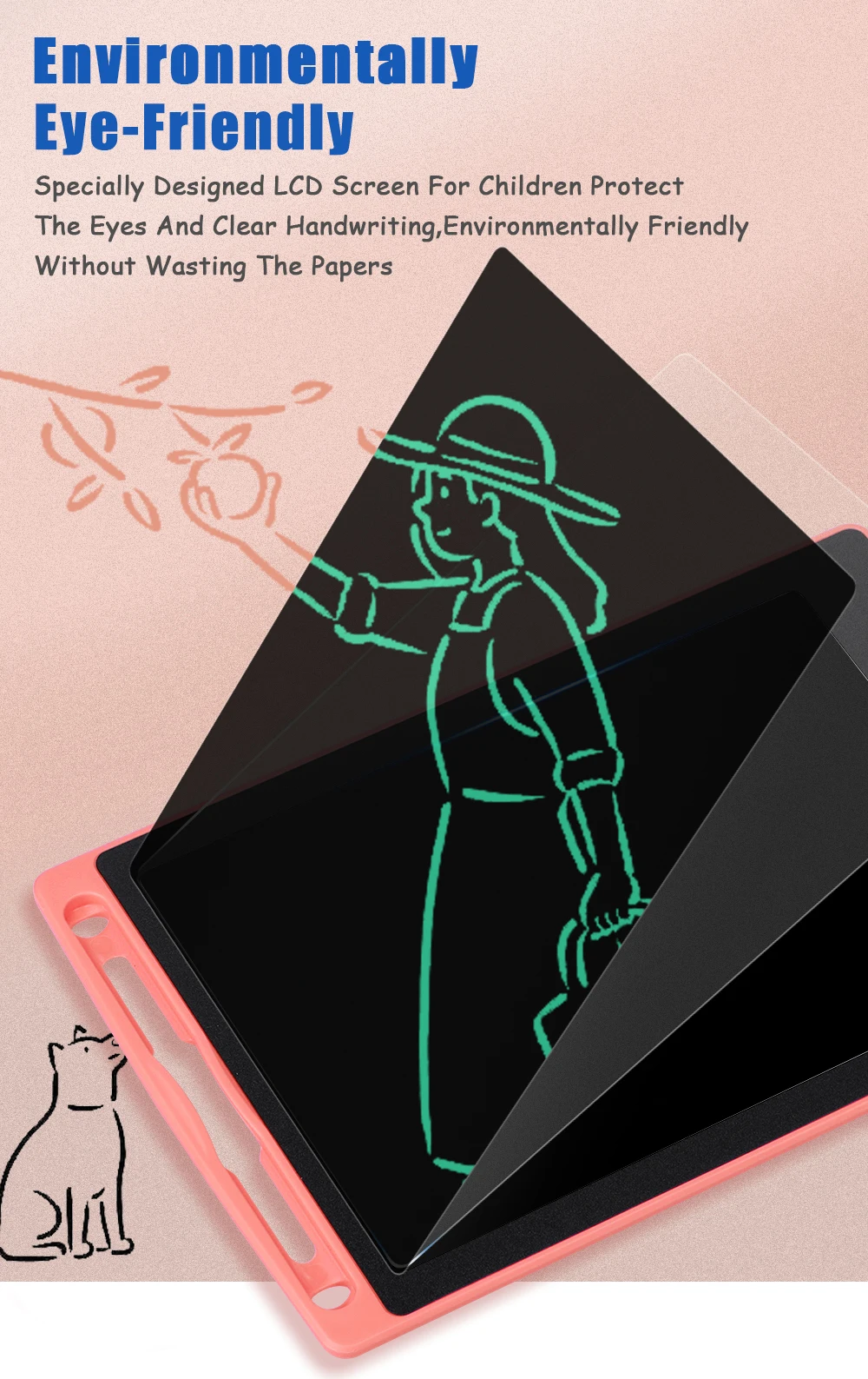 Коврик для рисования использует новейшую чувствительную к давлению технологию LCD, больше не беспокойтесь о потере бумаги и уничтожении деревьев; ЖК-экран, без излучения, без бликов, все ваши глаза будут более безопасными и удобными, когда вы долго будете творить на работе.