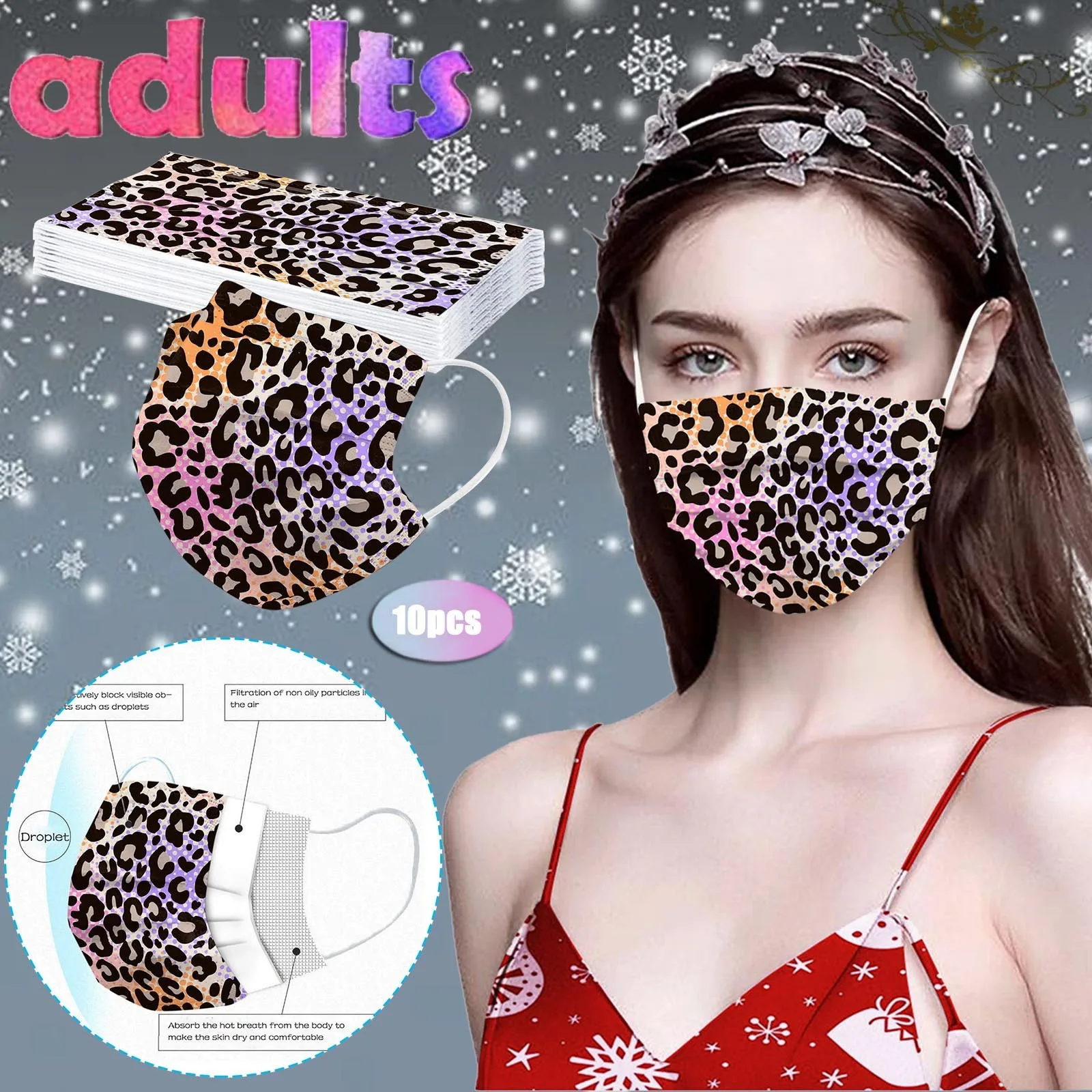 Взрослая маска с леопардовым принтом одноразовая маска для лица 3 слоя 10 шт