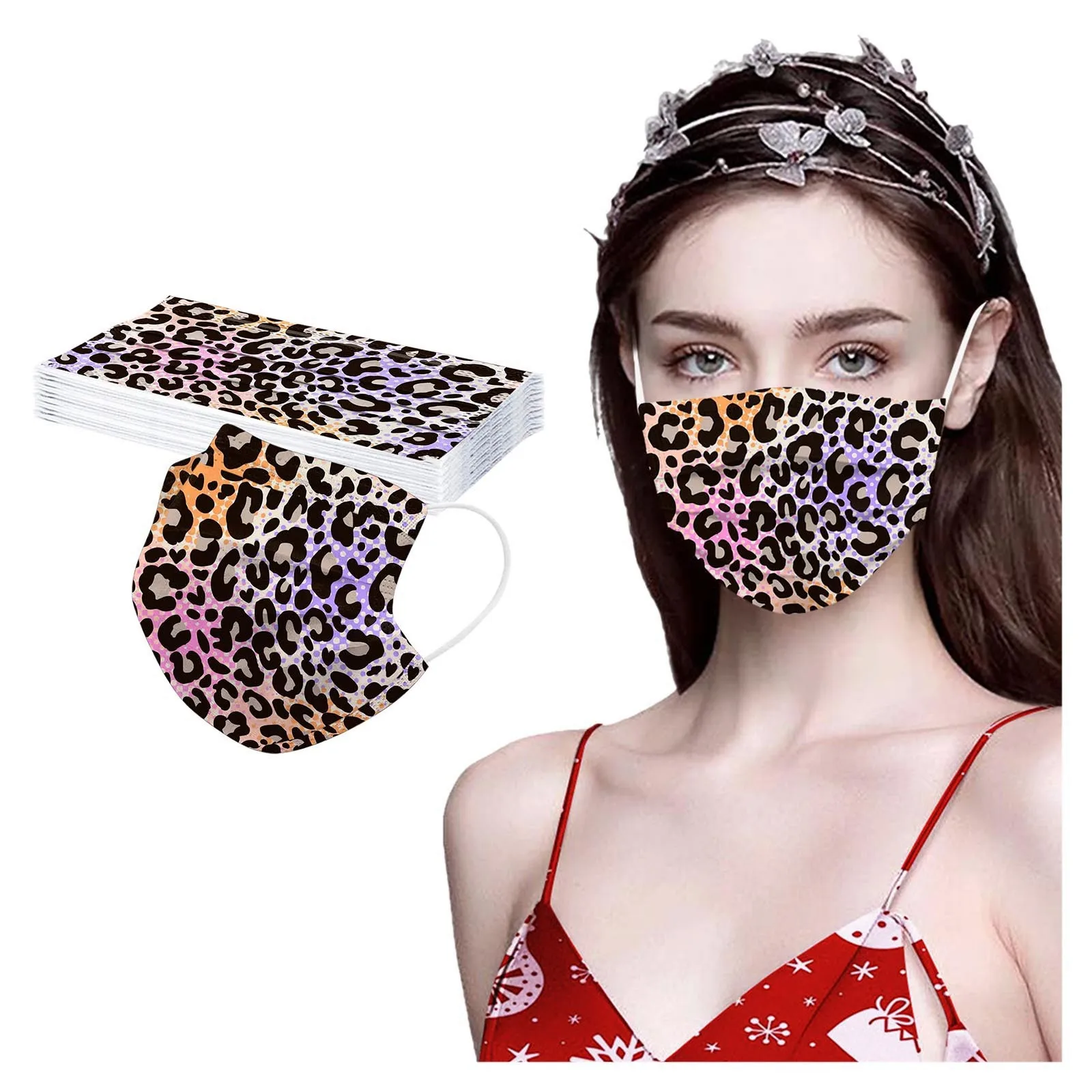 Маска унисекс одноразовая с леопардовым принтом, 10 шт.