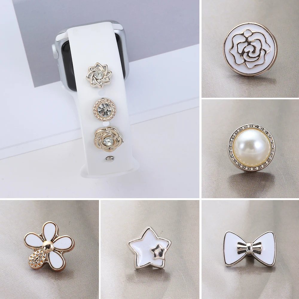 1 шт. жемчужный цветок силиконовый ремешок декоративные Кольца Гвозди для браслета Apple Watch Подвески Металлические креативные заклепки аксессуары для iwatch